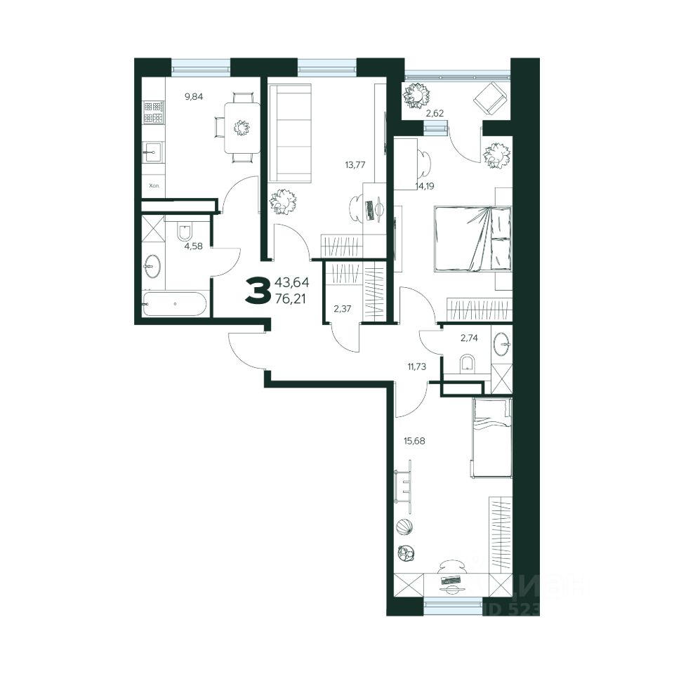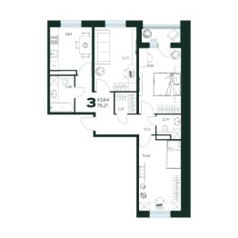 Продаётся 3-комнатная квартира в строящемся доме (Корпус 2), срок сдачи: III-кв. 2027, общей площадью 76.21 кв.м., на 2 этаже. Новый жилой комплекс "по ул. Первомайская"