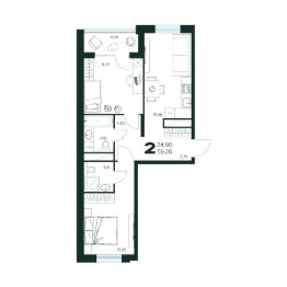 Продаётся 2-комнатная квартира в строящемся доме (Корпус 2), срок сдачи: III-кв. 2027, общей площадью 59.26 кв.м., на 4 этаже. Новый жилой комплекс "по ул. Первомайская"
