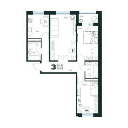 Продаётся 3-комнатная квартира в строящемся доме (Корпус 2), срок сдачи: III-кв. 2027, общей площадью 76.49 кв.м., на 2 этаже. Новый жилой комплекс "по ул. Первомайская"