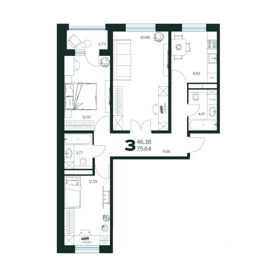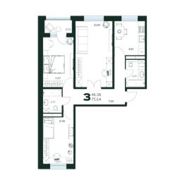 Продаётся 3-комнатная квартира в строящемся доме (Корпус 2), срок сдачи: III-кв. 2027, общей площадью 76.41 кв.м., на 2 этаже. Новый жилой комплекс "по ул. Первомайская"