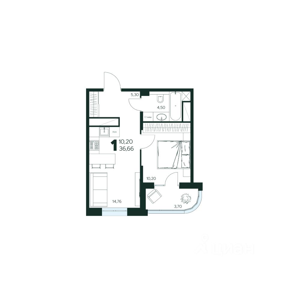 Продаётся 1-комнатная квартира в строящемся доме (Корпус 2), срок сдачи: III-кв. 2027, общей площадью 36.66 кв.м., на 2 этаже. Новый жилой комплекс "по ул. Первомайская"