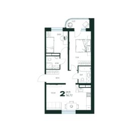 2-комн. квартира, 56,72 м²