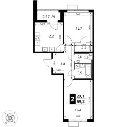 Продаётся 2-к квартира номер 1072 общей площадью 59.2 кв.м. на 11-м этаже 16 этажного здания. Чистовая отделка. Цена с учётом скидки.
