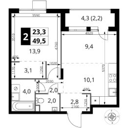 Продаётся 2-к квартира номер 430 общей площадью 49.5 кв.м. на 11-м этаже 17 этажного здания. Без отделки.