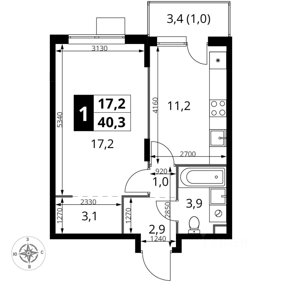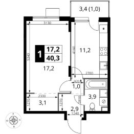 Продаётся 1-к квартира номер 431 общей площадью 40.3 кв.м. на 11-м этаже 17 этажного здания. Без отделки.