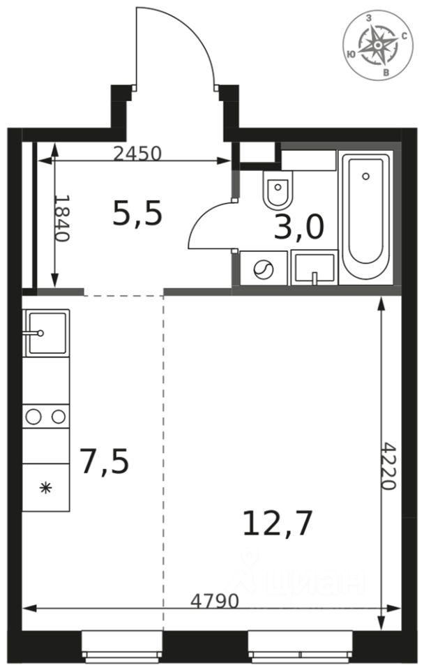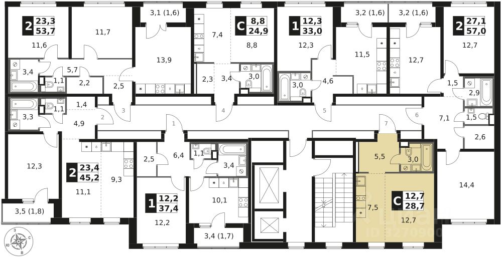 Продаётся квартира-студия номер 441 общей площадью 28.7 кв.м. на 2-м этаже 14 этажного здания. Отделка Whitebox.