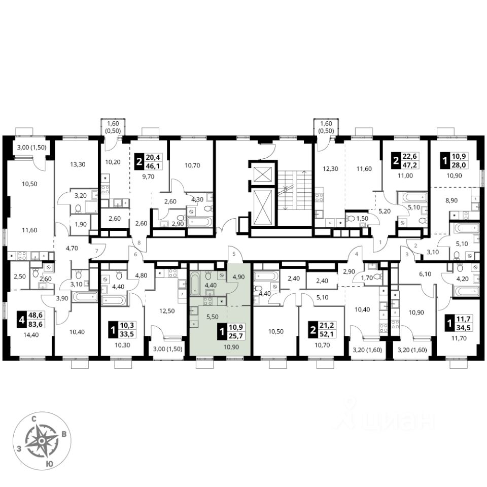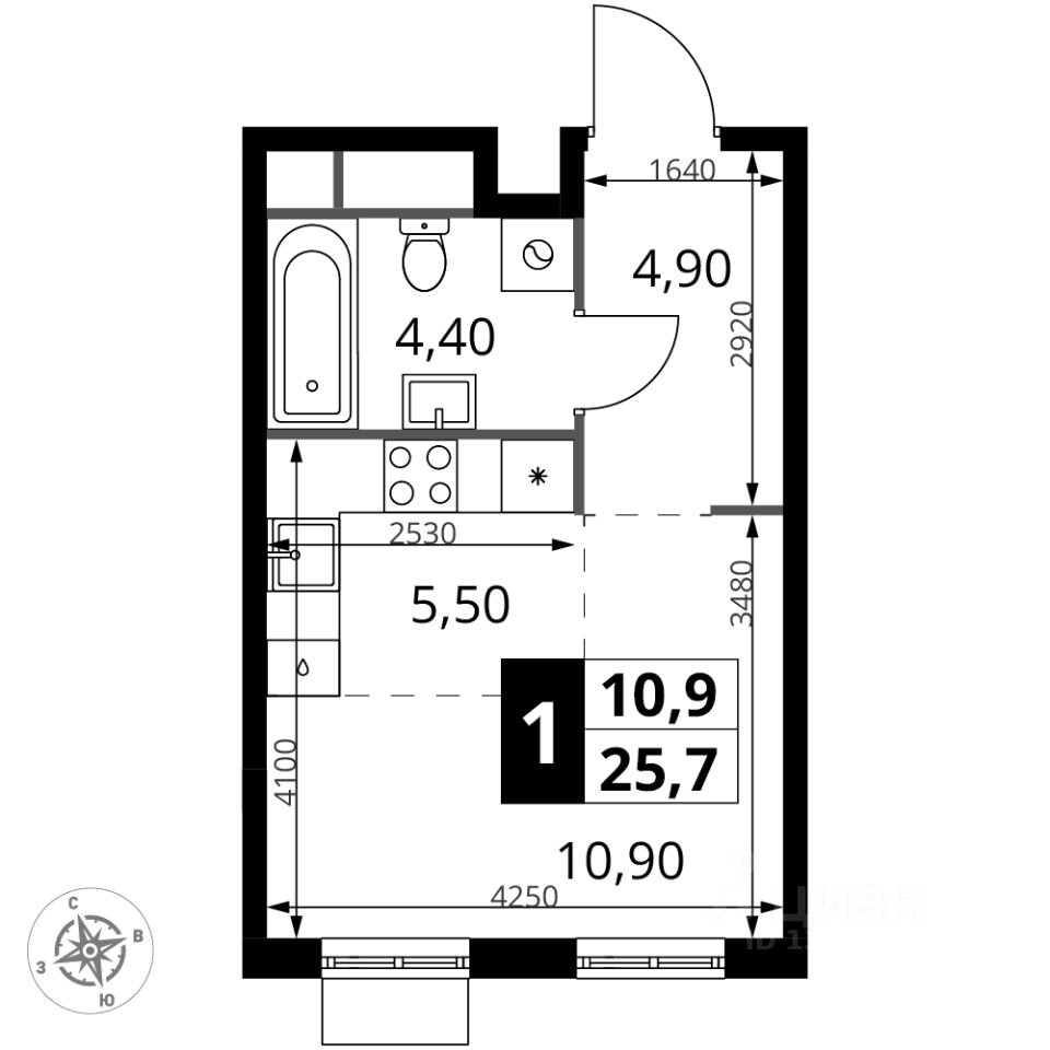 Продаётся квартира-студия номер 348 общей площадью 25.7 кв.м. на 8-м этаже 12 этажного здания. Без отделки.