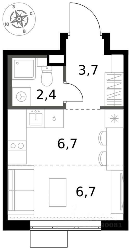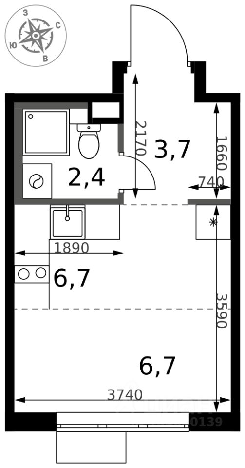 Продаётся квартира-студия номер 279 общей площадью 19.5 кв.м. на 4-м этаже 6 этажного здания. Предчистовая отделка. Цена с учётом скидки.
