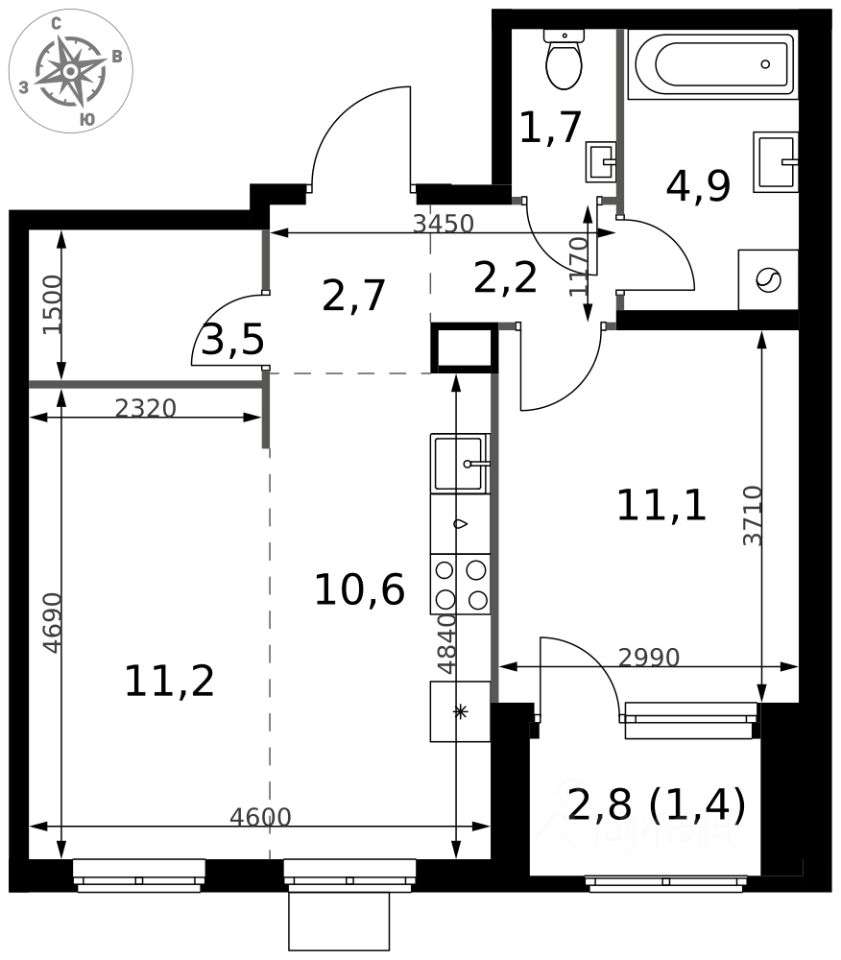 - Евроформат - просторное и удобное жилье с отличной планировкой.