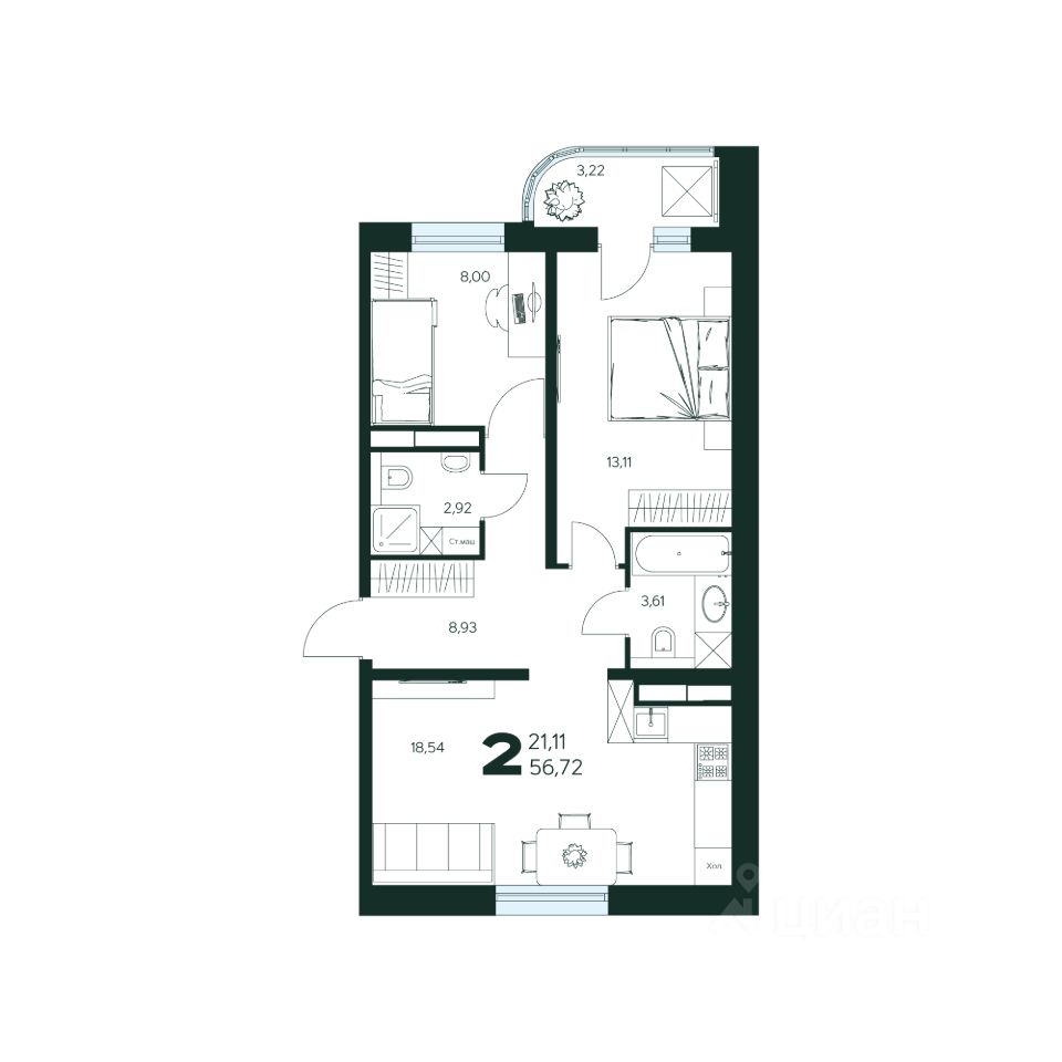 Продаётся 2-комнатная квартира в строящемся доме (Корпус 2), срок сдачи: III-кв. 2027, общей площадью 56.72 кв.м., на 7 этаже. Новый жилой комплекс "по ул. Первомайская"