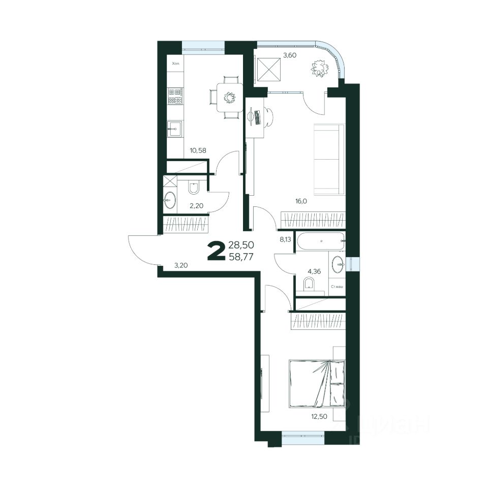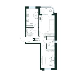 2-комн. квартира, 58,77 м²