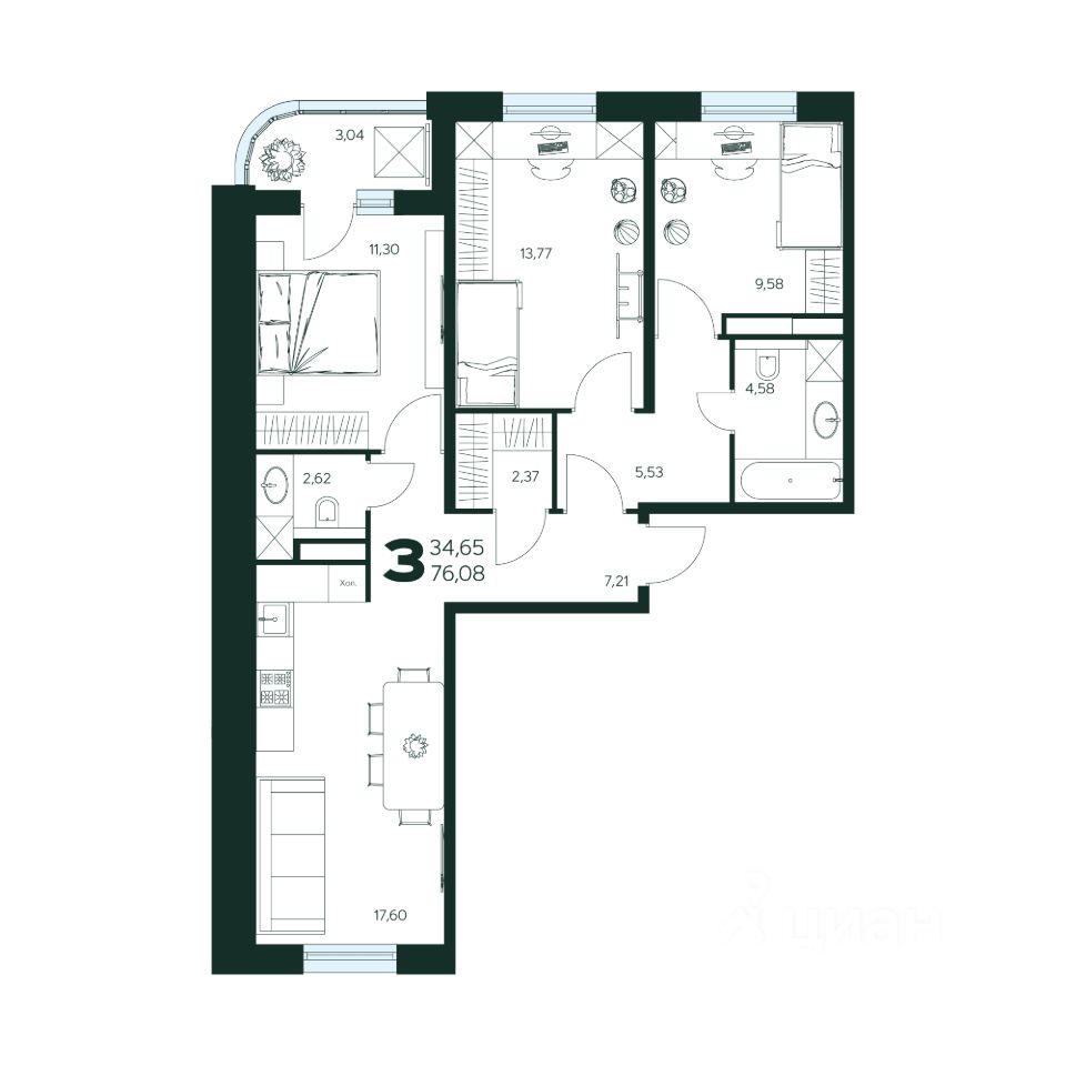 Продаётся 3-комнатная квартира в строящемся доме (Корпус 2), срок сдачи: III-кв. 2027, общей площадью 76.08 кв.м., на 5 этаже. Новый жилой комплекс "по ул. Первомайская"