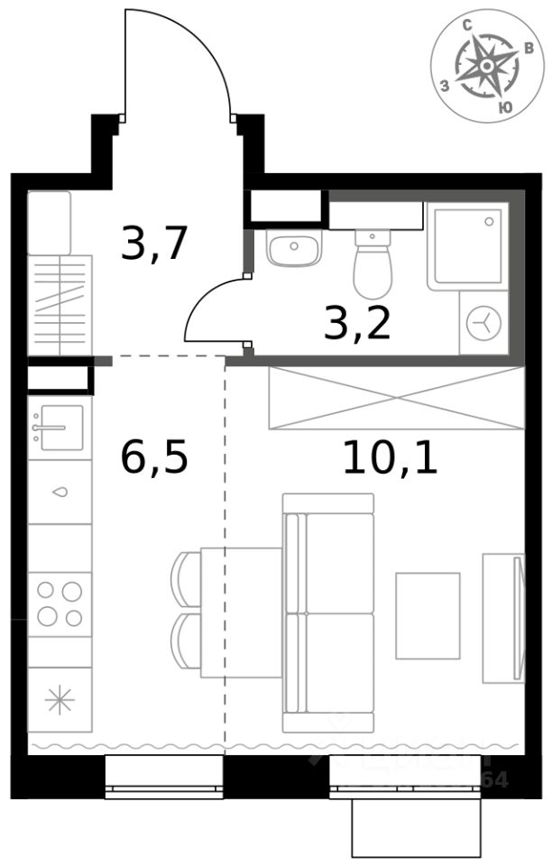 Продаётся квартира-студия номер 108 общей площадью 23.5 кв.м. на 9-м этаже 17 этажного здания. Отделка Whitebox. Цена с учётом скидки.