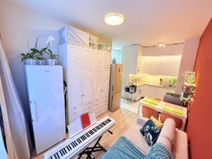 Продается евродвушка на 2-ом этаже в 17-ти этажном монолитном доме 2020 года постройки по адресу: Московская обл., г. Химки, улица имени К.И. Вороницына, дом 1, корпус 1. ЖК Две столицы. Уютная квартира с отличной планировкой. Окна выходят на одну сторону во двор. Общая площадь квартиры 33,4м2, жилая площадь 12м2, кухня-гостиная 15м2. Санузел совмещенный. Без дополнительной оплаты с покупателя в квартире остается: Полки и штанга в прихожей. Сантехника, тумба под умывальником, стиральная машина, сушильная машина. Кухонный гарнитур, вытяжка, варочная панель, микроволновка, духовка, холодильник, обеденный стол + стулья. В гостиной: диван, два шкафа, книжные полки. В комнате: диван, шкаф купе, комод, рабочий стол. Светильники, карнизы, шторы и тюль. Чистый подъезд. В подъезде два пассажирских и один грузовой лифт. В этом году построят станцию МЦД Монумент. Закрытый двор без машин, охрана, шлагбаум и домофон. Очень удобное местоположение дома: в шаговой доступности ТЦ Мега Химки с кинотеатром, множеством магазинов, ресторанов, салонов красоты. Рядом с домом также расположены фитнес клуб, парк долины реки Сходня, развитая инфраструктура, паркинг, школы, детские сады, аптеки, продуктовые магазины и т.д. Удобное транспортное сообщение: до ст. метро Планерная, Беломорская, Речной Вокзал, до ж/д ст. Химки (МЦД-3), аэропорта Шереметьево - 20 минут транспортом. В собственности у 1 взрослого с 2020 года на основании договора участия в долевом строительстве. Без обременений. Полная стоимость в договоре. Цена: 9 500 000 руб.