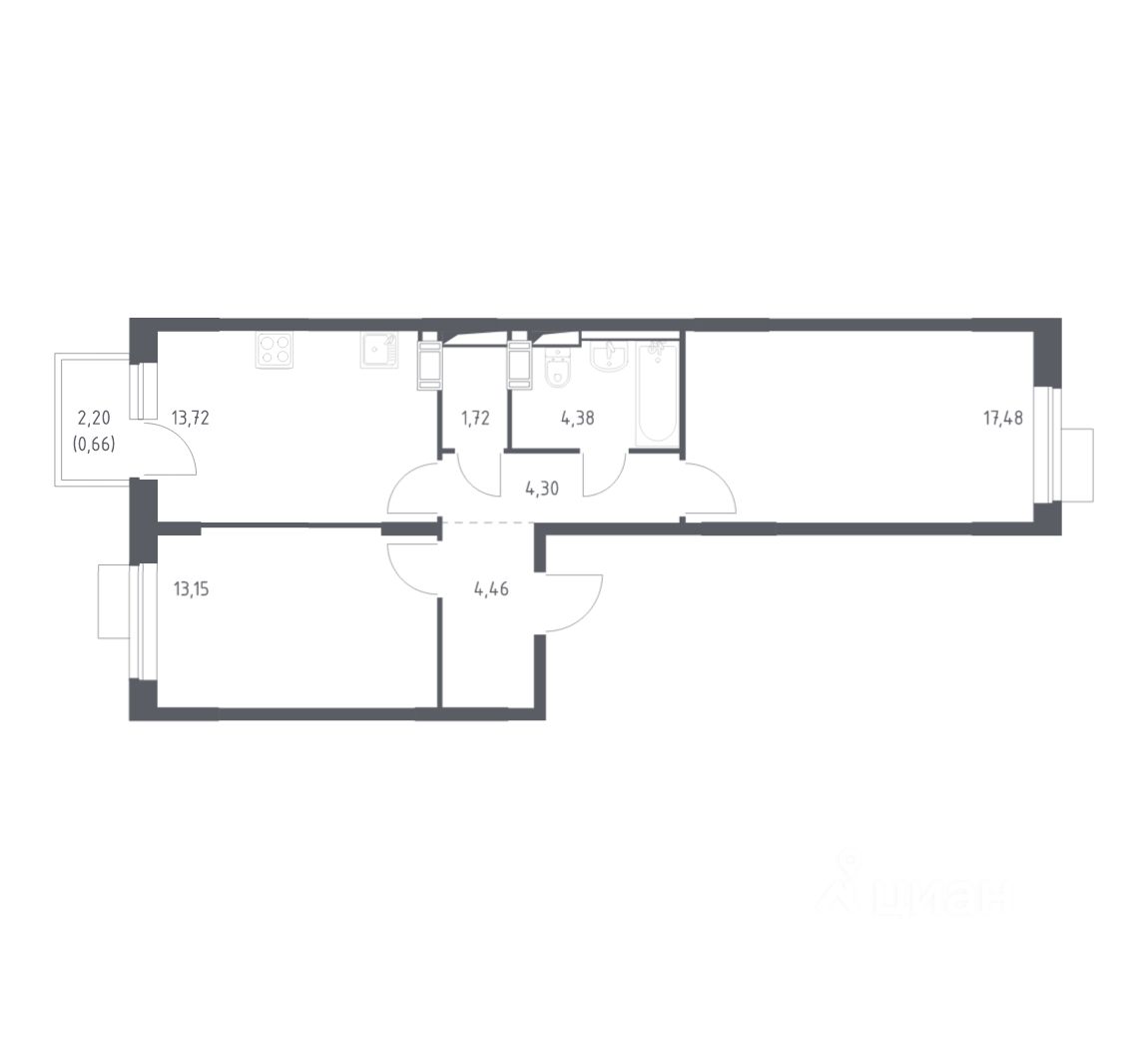 Строим кварталы для жизни с заботой о будущем. Предлагается 2-комнатная квартира оптиум-класса площадью 59,87 кв.м в корпусе 2.1 на 3-м этаже, в жилом комплексе "Пятницкие Луга".