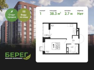 Продаётся 1-комнатная квартира в строящемся доме (Корпус 8 (2 очередь)), общей площадью 38.30 кв.м., на 2 этаже.