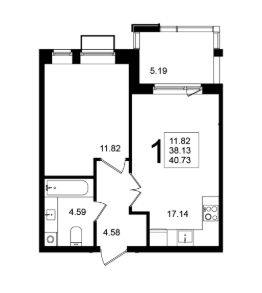 Продаётся 1-комнатная квартира в строящемся доме (Корпус 6), срок сдачи: 2-кв. 2026, общей площадью 40.73 кв.м., на 5 этаже.