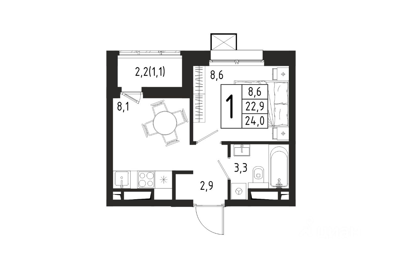 Продаётся 1-комнатная квартира в строящемся доме (Корпус 4 (2 очередь)), общей площадью 24.00 кв.м., на 4 этаже.