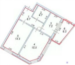 - две отдельные спальни (14,4 и 15,4), что предоставляет достаточно пространства для комфортного проживания,