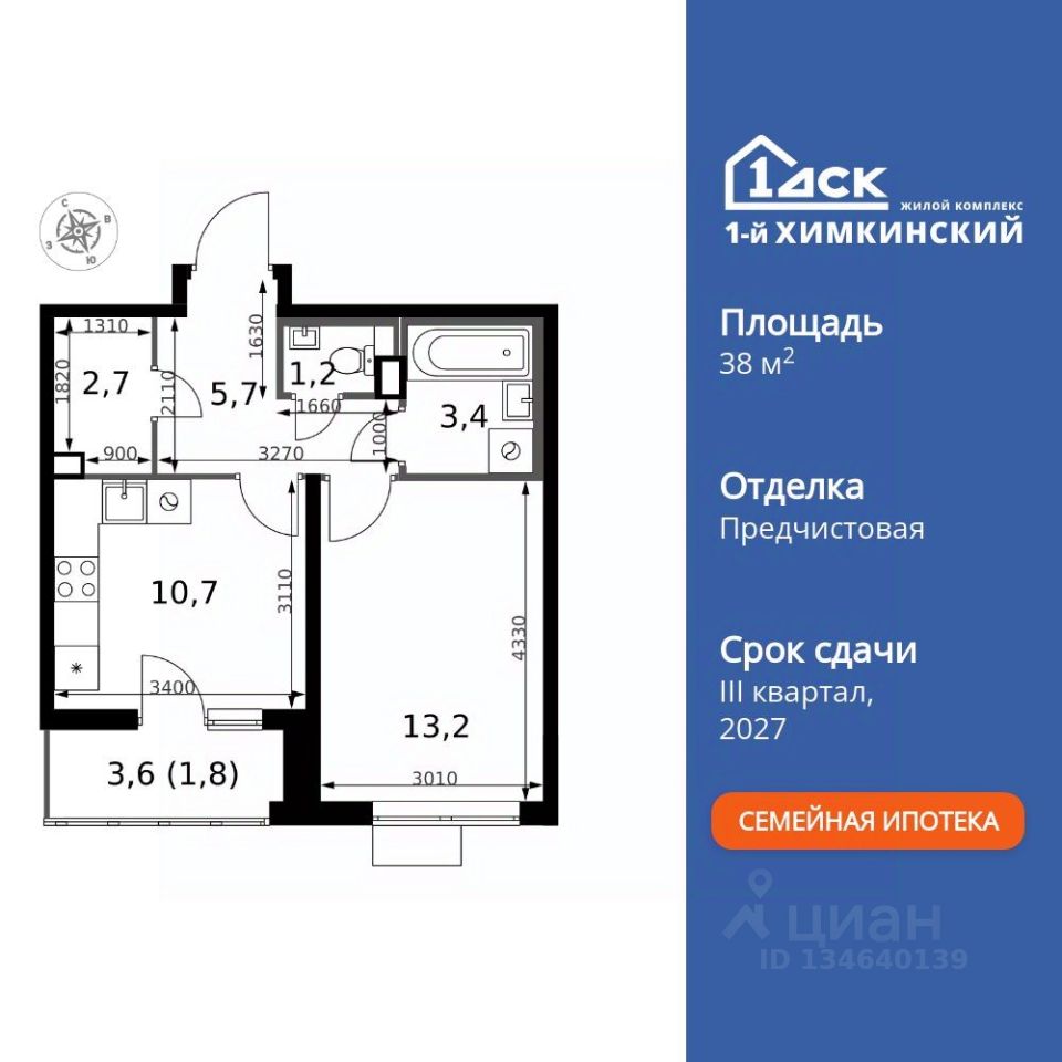 Продаётся 1-к квартира номер 528 общей площадью 38.7 кв.м. на 5-м этаже 13 этажного здания. Предчистовая отделка. Цена с учётом скидки.