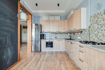 Квартира с дизайнерским ремонтом, выполненным с применением качественных материалов, встраиваемой мебелью и техникой (полностью оборудована кухня, санузел с ванной, гардеробная с системой хранения, в прихожей большой шкаф, шкаф и комод в детской).