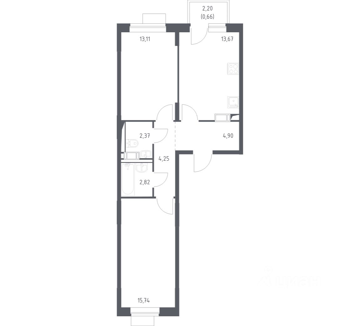 Строим кварталы для жизни с заботой о будущем. Предлагается 2-комнатная квартира оптиум-класса площадью 57,52 кв.м в корпусе 2.1 на 3-м этаже, в жилом комплексе "Пятницкие Луга".
