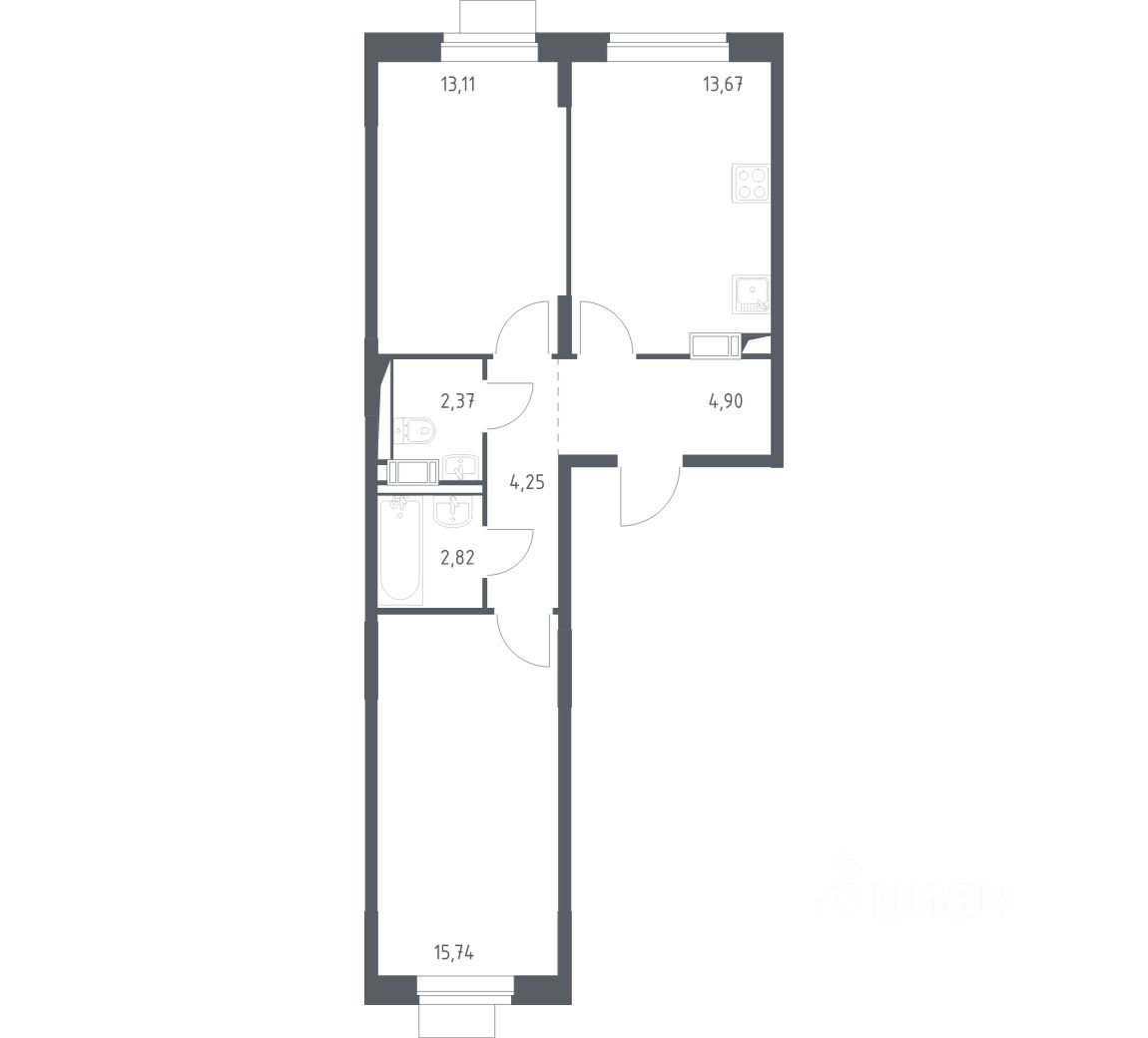 Строим кварталы для жизни с заботой о будущем. Предлагается 2-комнатная квартира оптиум-класса площадью 56,86 кв.м в корпусе 2.1 на 5-м этаже, в жилом комплексе "Пятницкие Луга".