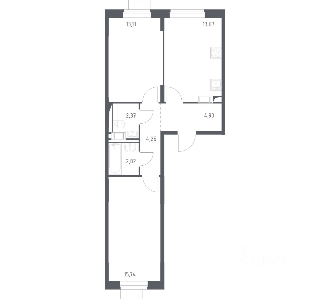 Строим кварталы для жизни с заботой о будущем. Предлагается 2-комнатная квартира оптиум-класса площадью 56,86 кв.м в корпусе 2.1 на 9-м этаже, в жилом комплексе "Пятницкие Луга".