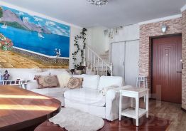 Гостинаякухня: 28 кв.м., объединённое пространство с обеденной зоной и выходом на балкон. Кухня: фасад из шпона ясеня, встроенная техника, посудомоечная и стиральная машины, духовой шкаф, жарочная плита, вытяжка, холодильник. Гардеробная зона: встроенный угловой шкаф, встроенный шкаф под лестницей.