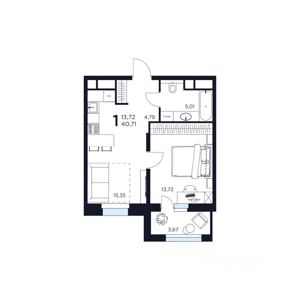 Продаётся 1-комнатная квартира в строящемся доме (Дом 7), срок сдачи: III-кв. 2028, общей площадью 40.71 кв.м., на 7 этаже. Новый жилой комплекс "ВОСТОК II" от застройщика "Новое Время - Химки" расположен по адресу: Московская область, Химки, улица Германа Титова, 2
