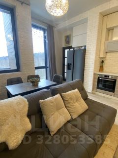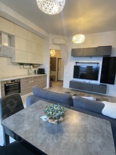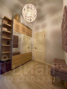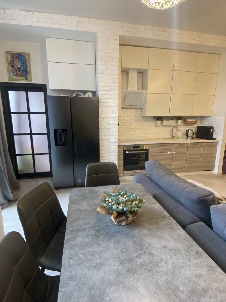 В квартире сделан стильный дизайнерский ремонт, продуманный до мелочей. Общая площадь 54 кв.м. Планировка: просторная кухня-гостиная, спальня, гардеробная комната и санузел. Высокие потолки-3.40, панорамные окна в пол. Разные варианты подсветки: точечные споты, бра.
