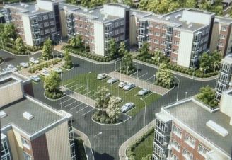 Между жилыми корпусами проложены автомобильные проезды и тротуары для пешеходов. Во дворах проведено декоративное озеленение, организованы наземные автостоянки с множеством парковочных мест и созданы прогулочные зоны с лавочками, беседками и универсальными спортивно- игровыми городками.
