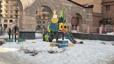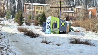 Дворы без машин, во дворах детские площадки.