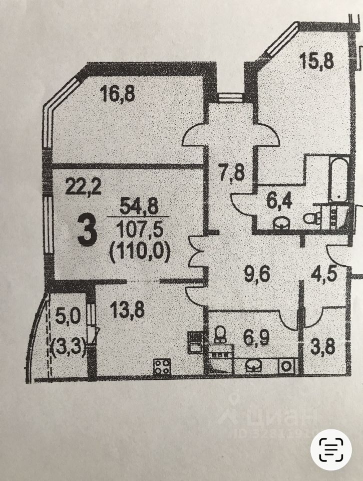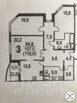 Продаётся просторная трехкомнатная квартира площадью 107.5 квадратных метров на 20 этаже монолитного дома новой постройки (2017 год) в районе Новые Химки, по адресу Молодёжная улица, 63 к2.