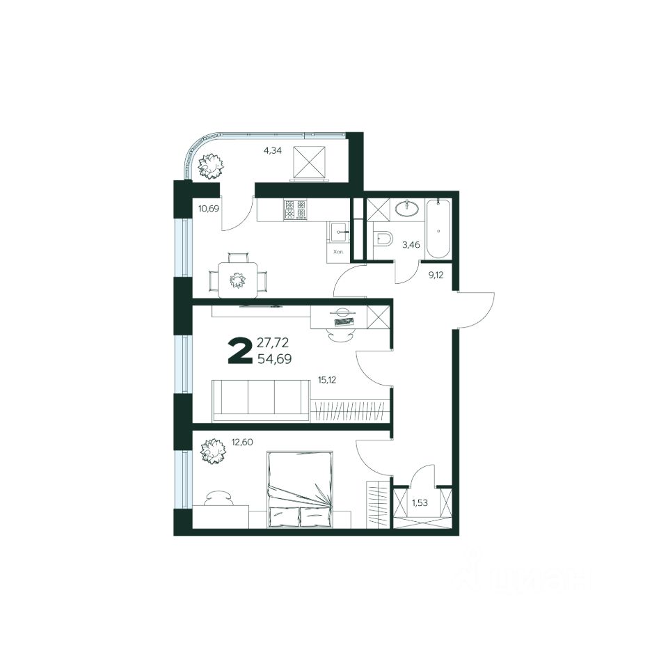 Продаётся 2-комнатная квартира в строящемся доме (Корпус 2), срок сдачи: III-кв. 2027, общей площадью 54.69 кв.м., на 7 этаже. Новый жилой комплекс "по ул. Первомайская"
