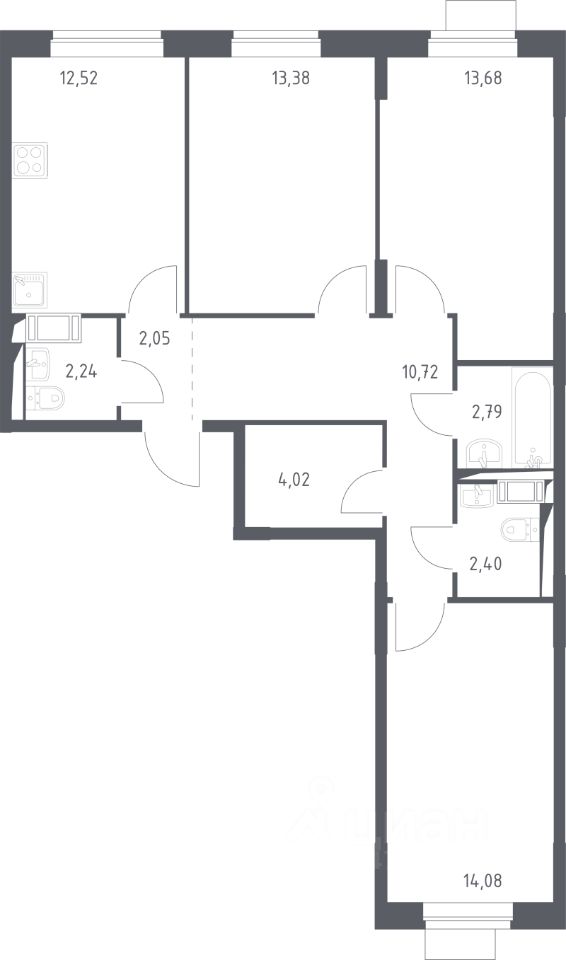 Продаётся 3-комнатная квартира в строящемся доме (Корпус 2.1), срок сдачи: II-кв. 2026, общей площадью 77.88 кв.м., на 7 этаже. Расположение, транспортная доступность