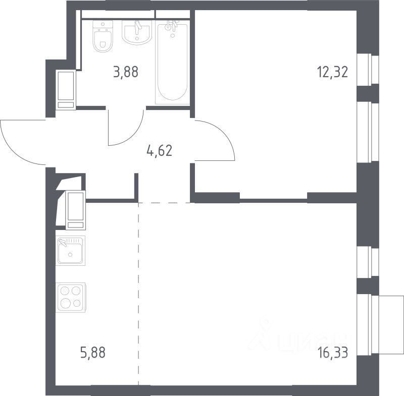 Продаётся 1-комнатная квартира в строящемся доме (Корпус 2.1), срок сдачи: II-кв. 2026, общей площадью 43.03 кв.м., на 7 этаже. Расположение, транспортная доступность