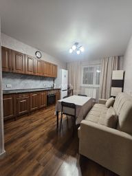 В квартире выполнен качественный евроремонт с использованием современных материалов. Просторная кухня идеально подходит для семейных ужинов и приема гостей. Комнаты светлые и уютные, окна выходят во двор, что обеспечивает тишину и спокойствие. Санузел раздельный, что очень удобно для семьи. Квартира оборудована всем необходимым для комфортного проживания, включая лоджию для отдыха на свежем воздухе.