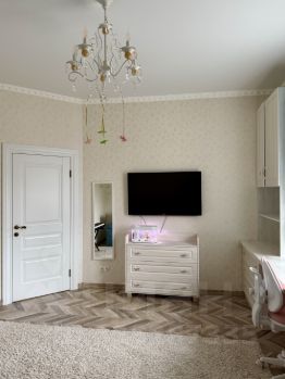 4-комнатная квартира с изолированными комнатами и качественным дизайнерским ремонтом в светлых тонах.