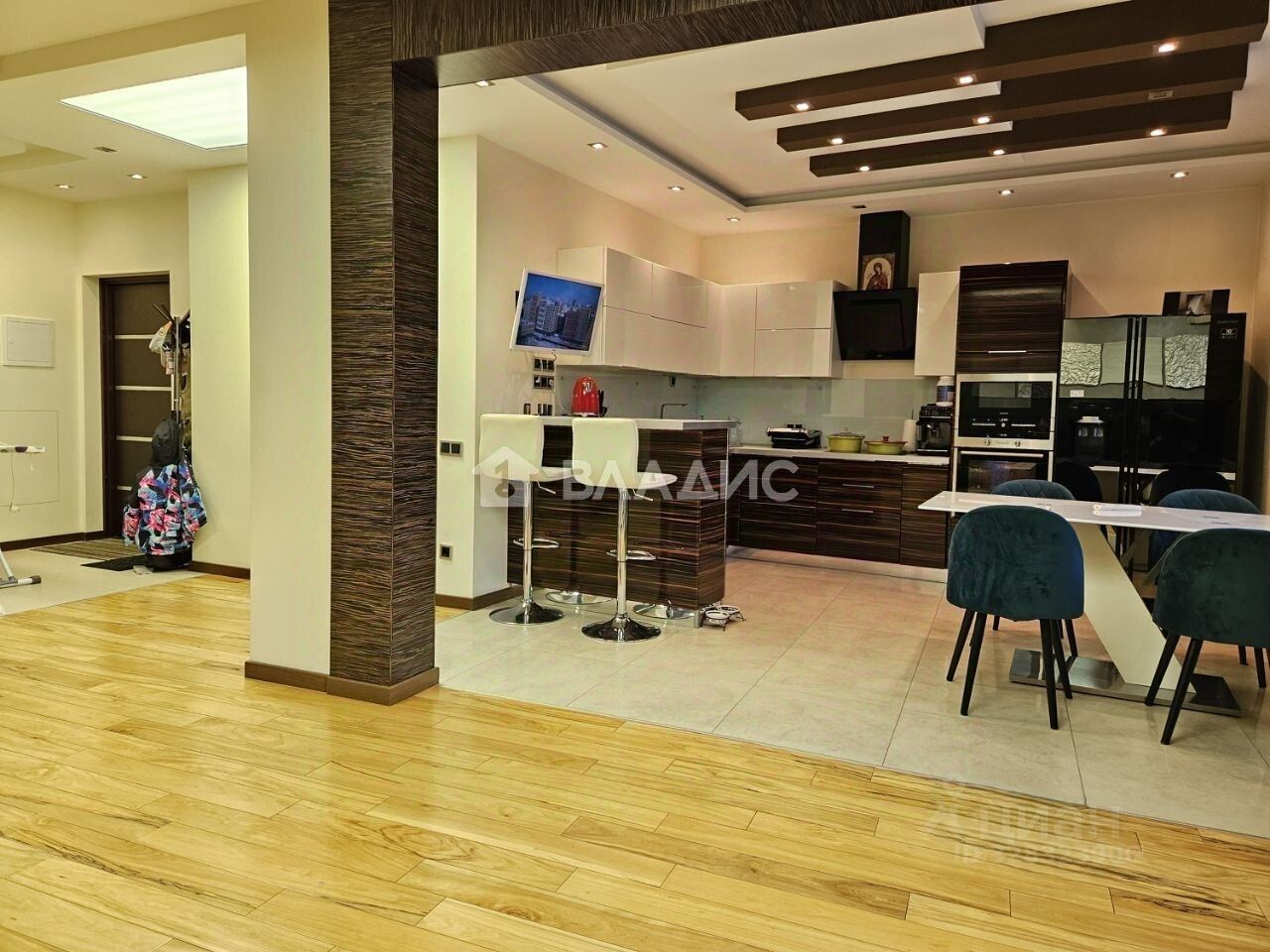 В квартире недавно выполнен дизайнерский ремонт с использованием качественных материалов.