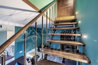 Кухня-гостиная мечты со стильным дизайном - место для семейных ужинов или дружеских посиделок. Кондиционер, который идеально вписан в общий интерьер, не сразу и заметишь. Лестница из натурального бука, двери -массив сосны, отделка шпон дуба.