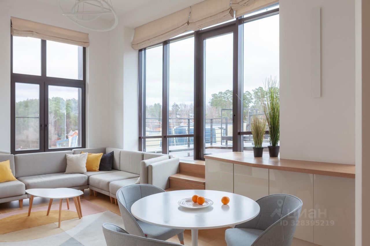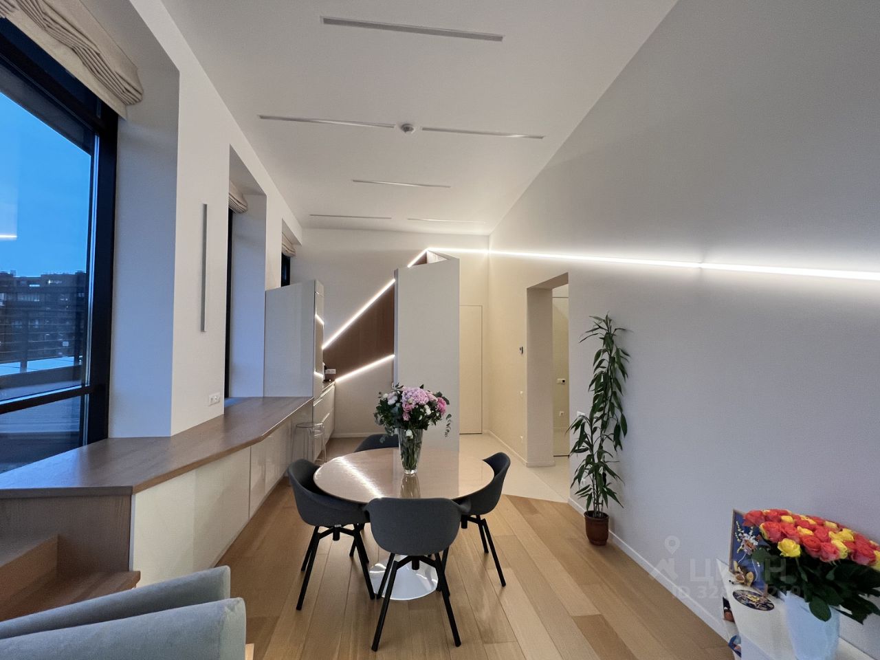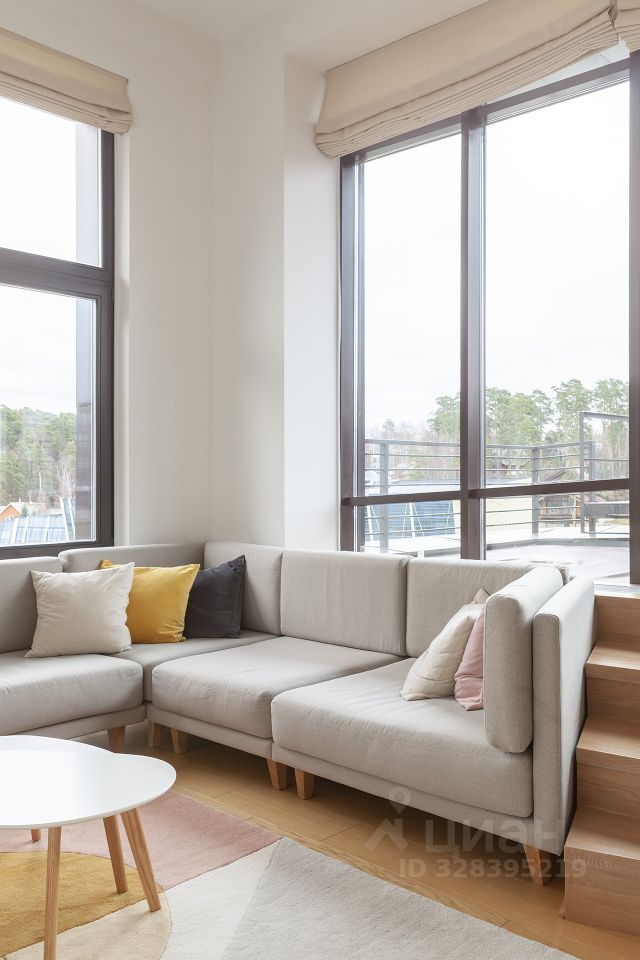Панорамное остекление (окна от пола до потолка, потолки до 4 метров) наполняет внутреннее пространство квартиры естественным светом, помимо остекления в квартире спроектировано и имеется очень много освещения.