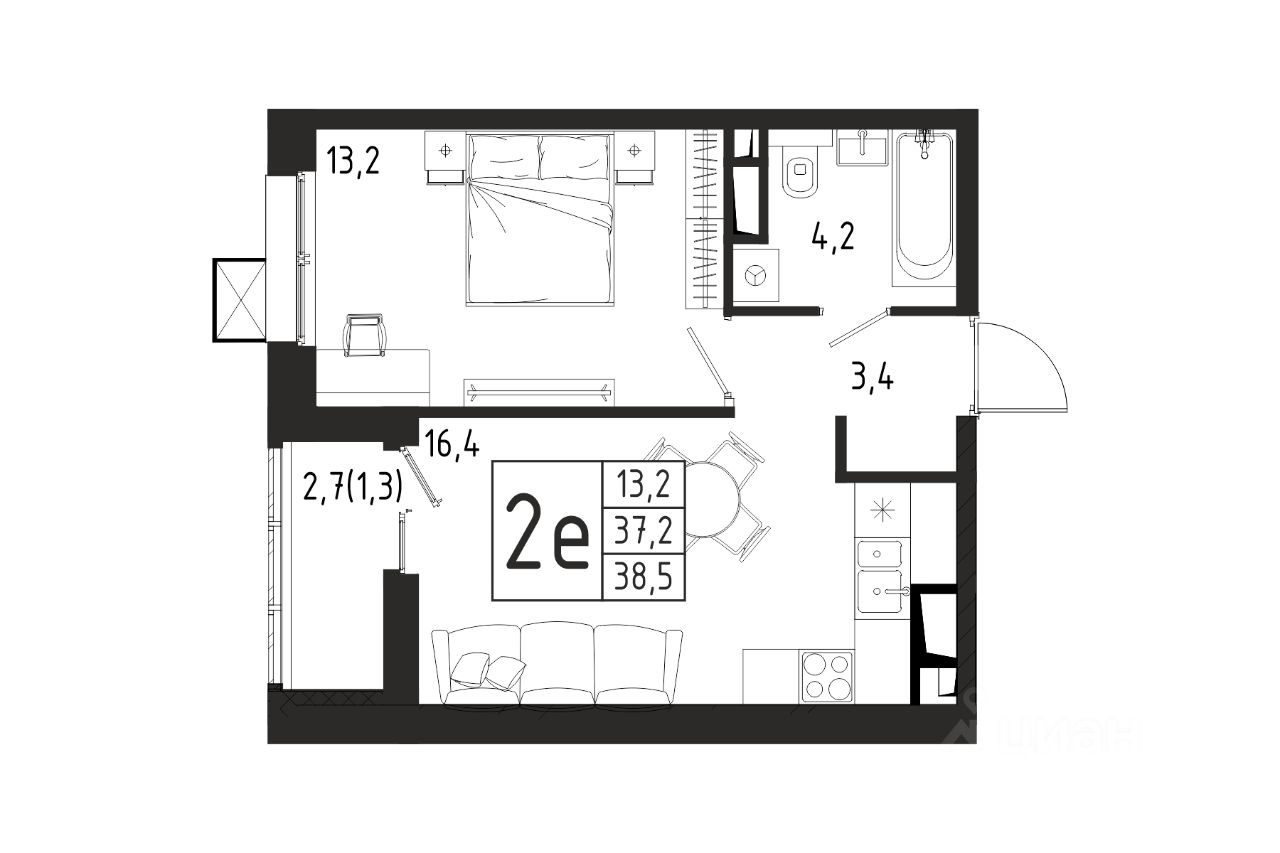 Продаётся 1-комнатная квартира в строящемся доме (Корпус 4 (2 очередь)), общей площадью 38.50 кв.м., на 2 этаже.