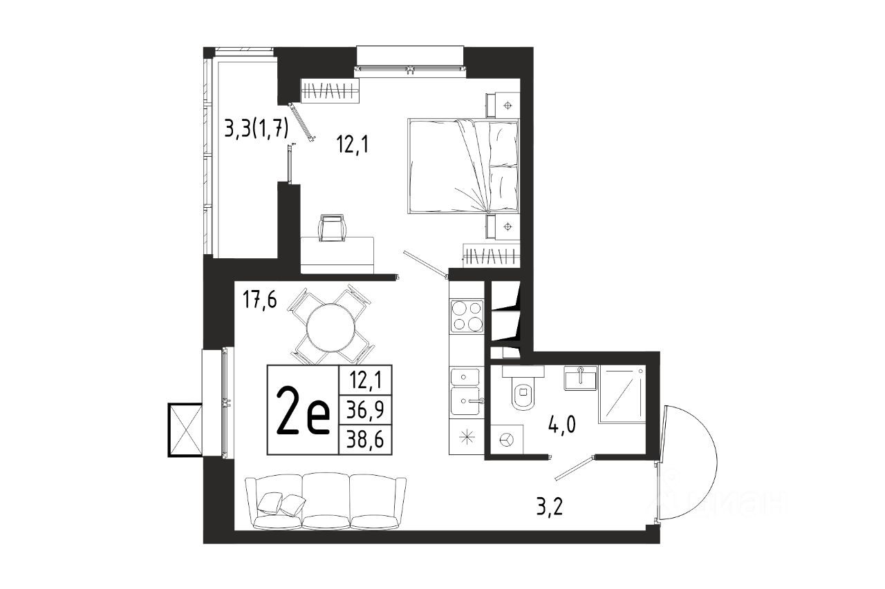 Продаётся 1-комнатная квартира в строящемся доме (Корпус 4 (2 очередь)), общей площадью 38.60 кв.м., на 4 этаже.