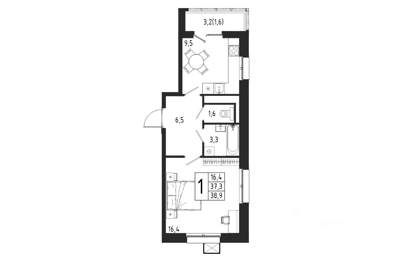 Продаётся 1-комнатная квартира в строящемся доме (Корпус 4 (2 очередь)), общей площадью 38.90 кв.м., на 4 этаже.