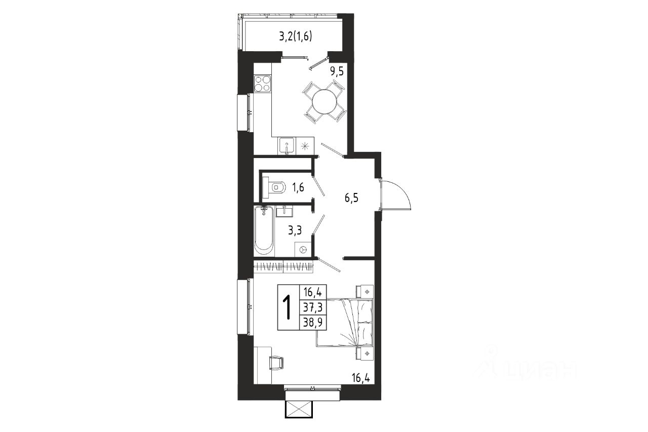Продаётся 1-комнатная квартира в строящемся доме (Корпус 8 (2 очередь)), общей площадью 38.90 кв.м., на 4 этаже.