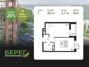 Продаётся 1-комнатная квартира в строящемся доме (Корпус 4 (2 очередь)), общей площадью 38.00 кв.м., на 2 этаже.