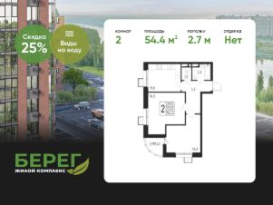 Продаётся 2-комнатная квартира в строящемся доме (Корпус 4 (2 очередь)), общей площадью 54.40 кв.м., на 5 этаже.