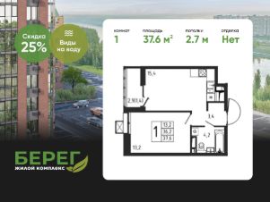 Продаётся 1-комнатная квартира в строящемся доме (Корпус 8 (2 очередь)), общей площадью 37.60 кв.м., на 10 этаже.