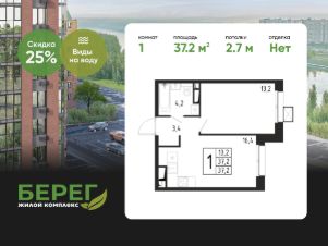 Продаётся 1-комнатная квартира в строящемся доме (Корпус 8 (2 очередь)), общей площадью 37.20 кв.м., на 1 этаже.